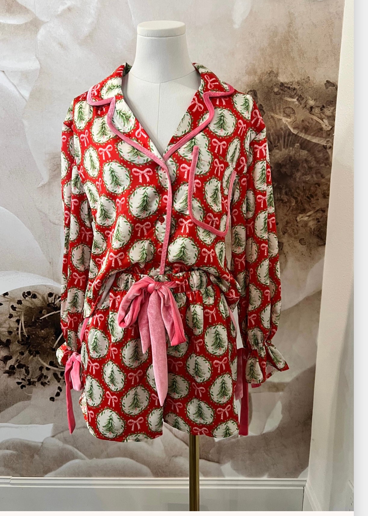 Sweet little Tree and Bow satin pajama top in red! Pair with our matching shorts.