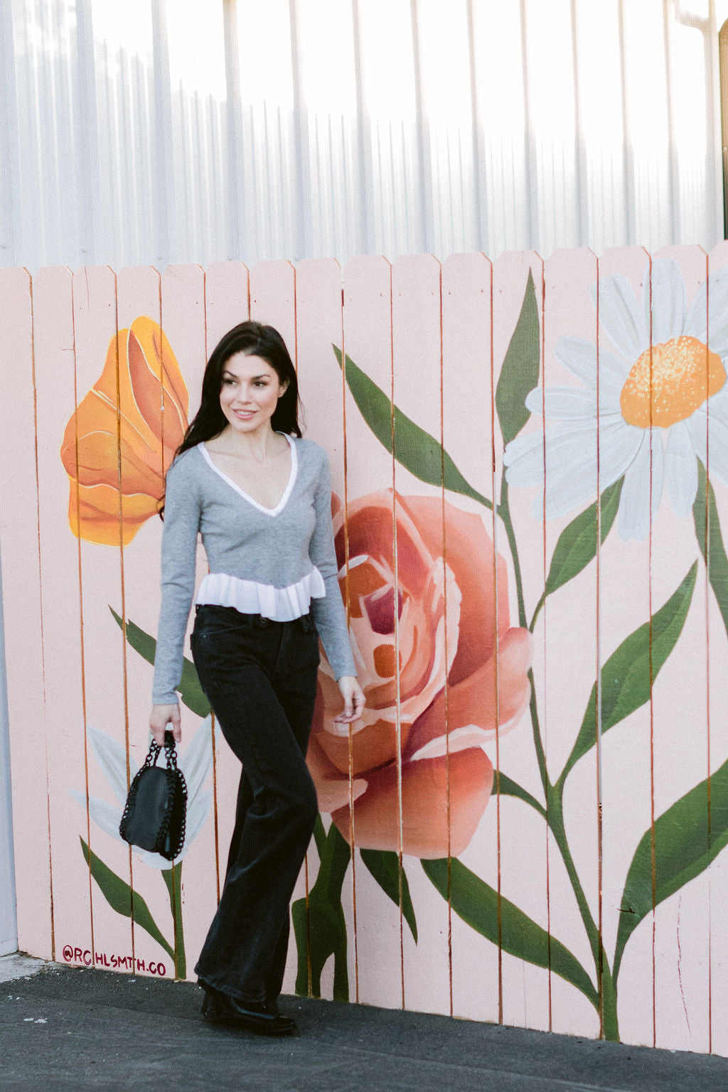 A cozy classic with a modern twist, the Heather Charm Sweater brings feminine flair to your everyday wardrobe. The soft grey knit pairs effortlessly with anything, while the crisp white trim and ruffled hem add just the right touch of charm.