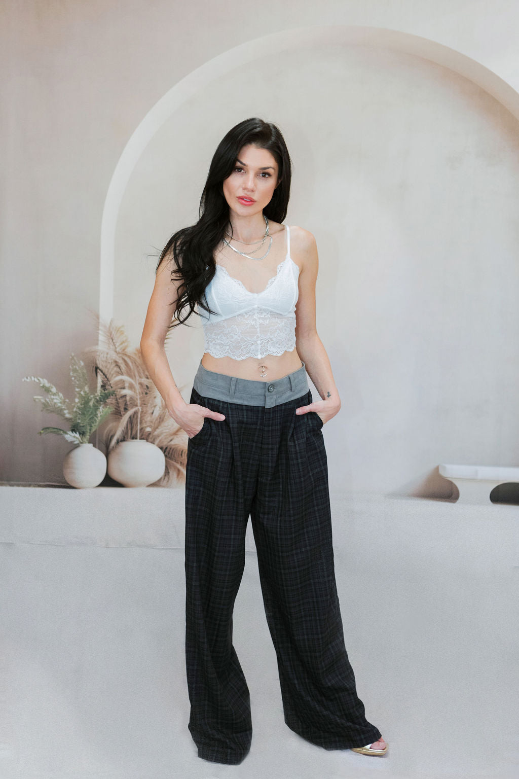 These trousers bring a fresh take on timeless plaid. Designed with a high-rise fit with a contrasting waistbands that adds just a little more detail to the pant. The wide-leg creates a flowy, elongated look that flatters every shape while the soft fabric ensures comfort.