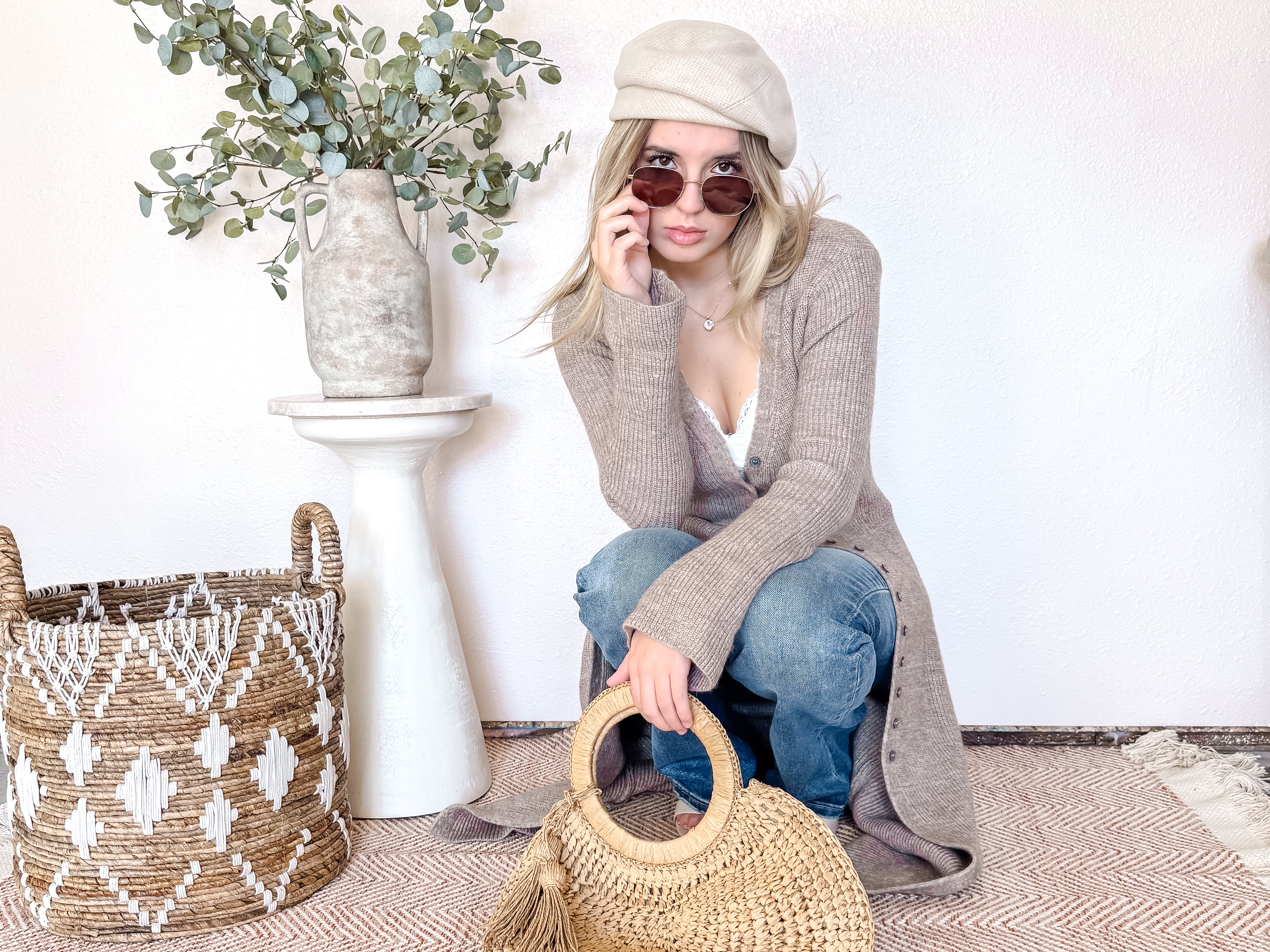 A neutral you'll reach for all season long, the Sandstone Knit Cardigan combines cozy comfort with elevated simplicity. Crafted from a soft ribbed knit in a warm taupe hue, this longline cardigan features a full button up front that allows you to wear it open for a relaxed look or fully closed for extra warmth and coverage. The flattering drape and subtle bell sleeves add a modern, boutique-inspired touch, making it a timeless layering piece for any outfit.