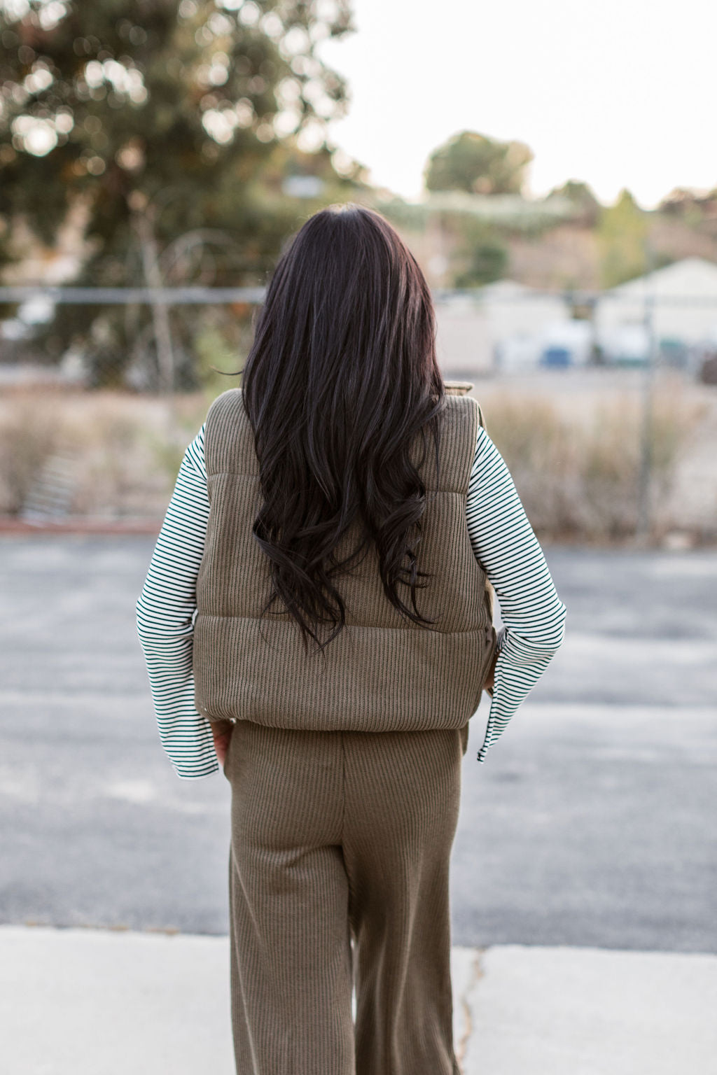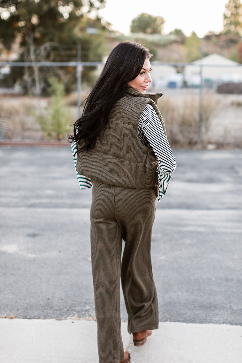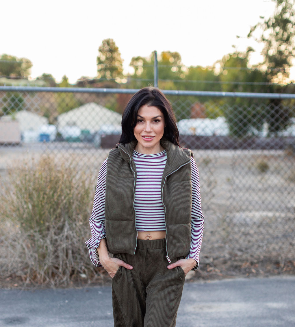The Willow Vest is a cropped puffer-meets-knit made for layering. With it's ribbed texture, high collar, and zip front, it adds just the right of touch to any outfit. Functional side pockets keep it practical, while the cropped cut pairs perfectly with the Willow Pants for a set.
