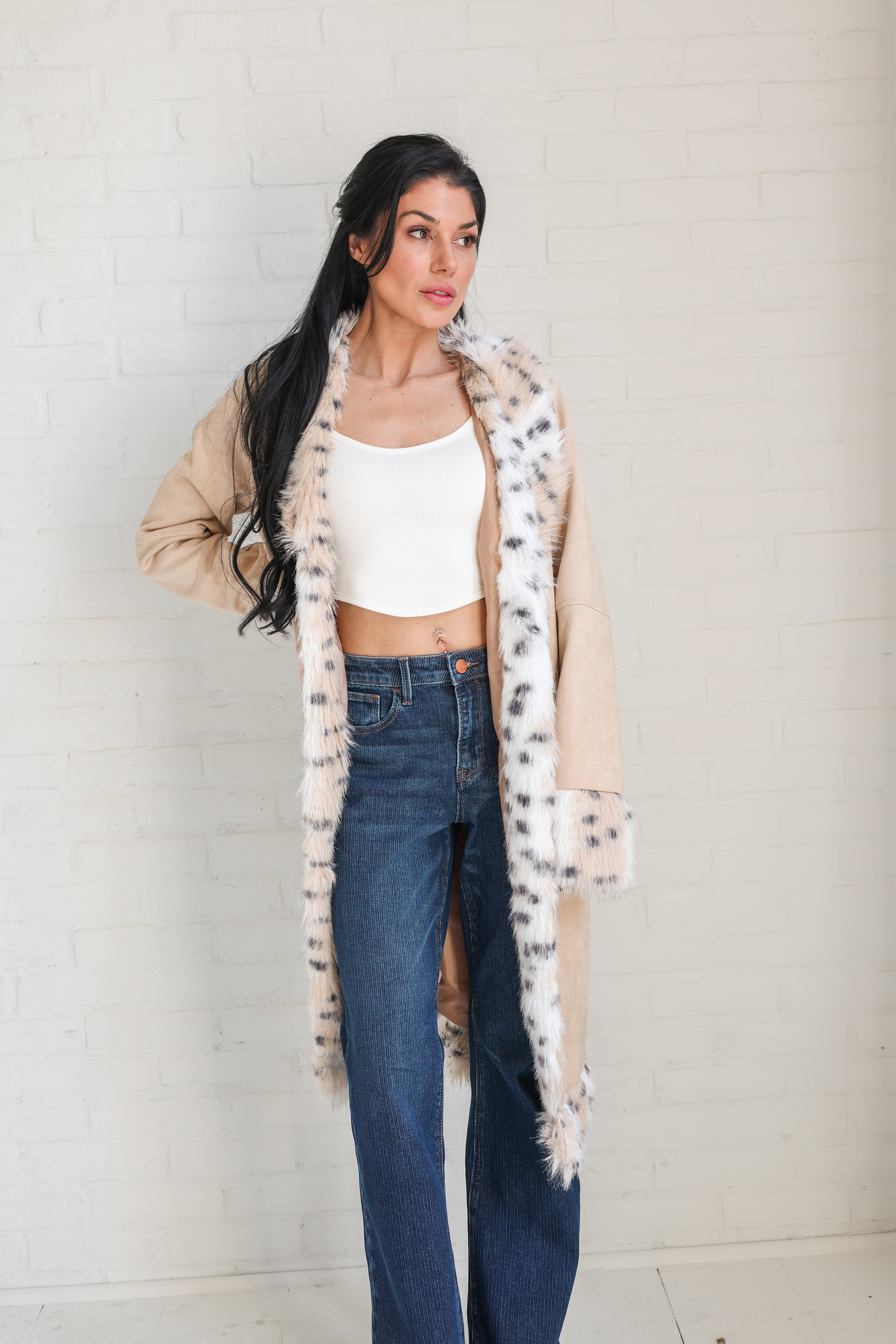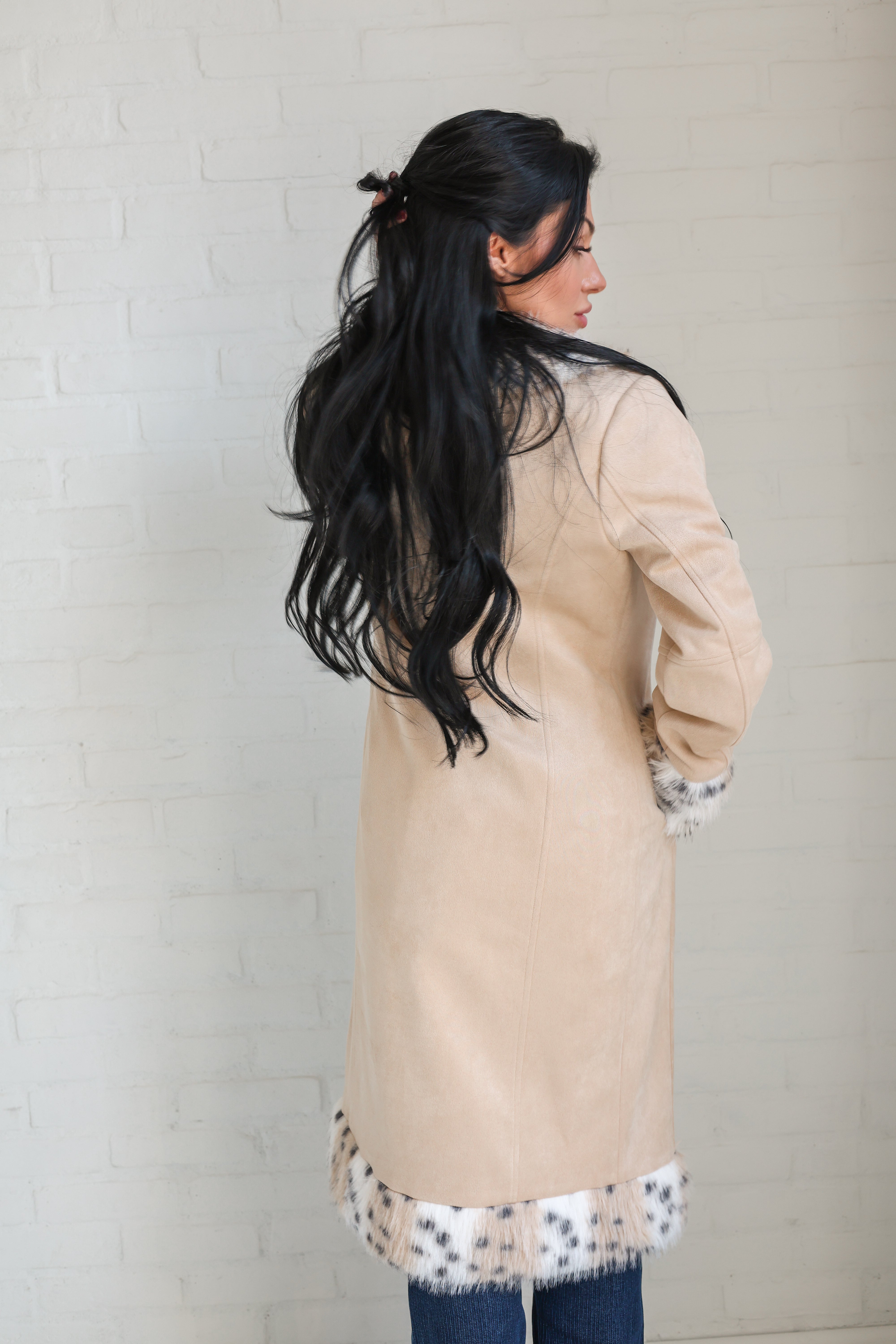Elevated any outfit with this darling jacket with faux fur accents!
