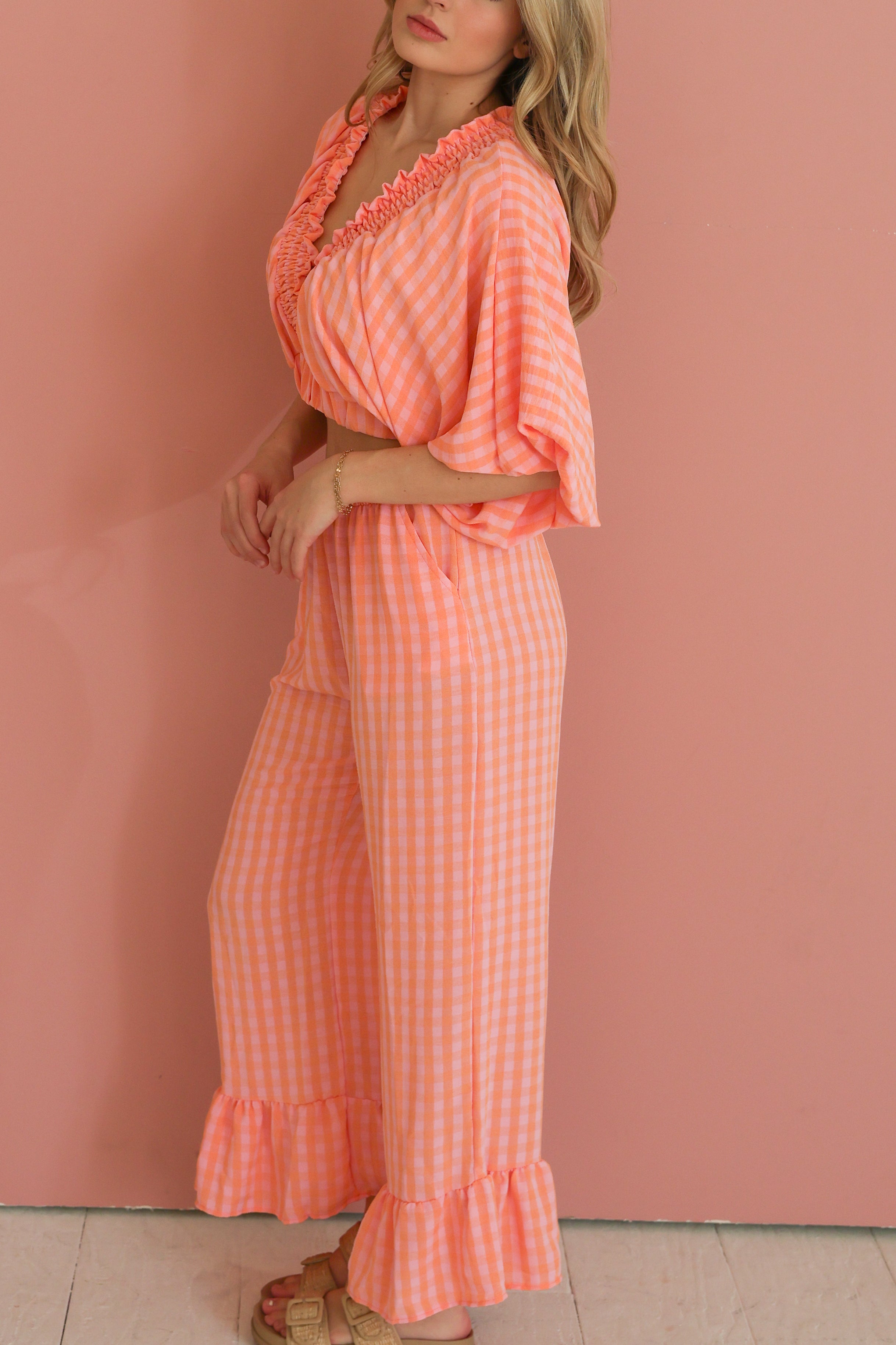 So fun and unexpected! Adorable top to pair with the matching pants or throw on with a denim skirt!
